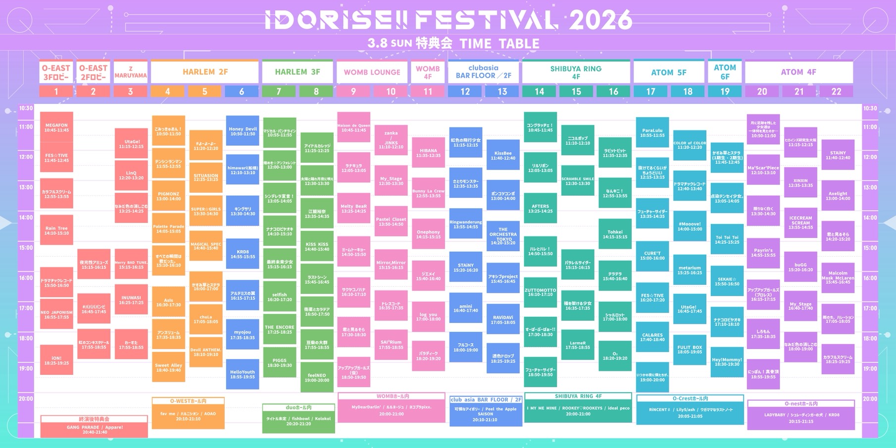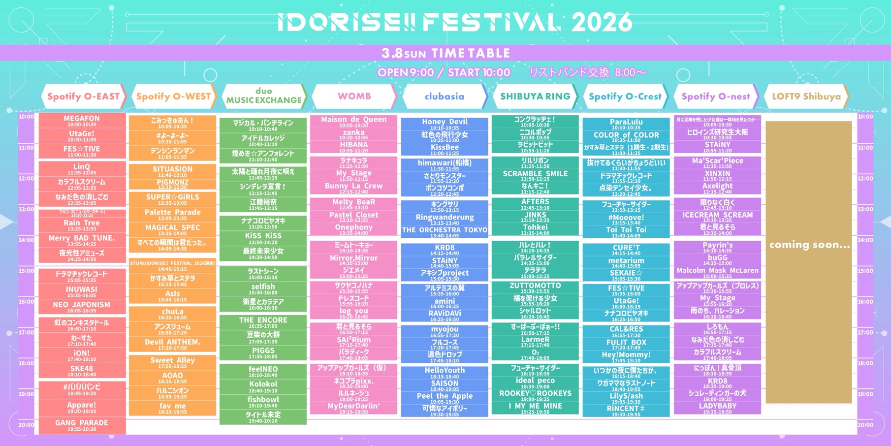【会場】Spotify O-EAST、Spotify O-WEST、Spotify O-nest、Spotify O-Crest、duo MUSIC EXCHANGE、WOMB、clubasia、LOFT9 Shibuya SHIBUYA RING (※9会場連動)